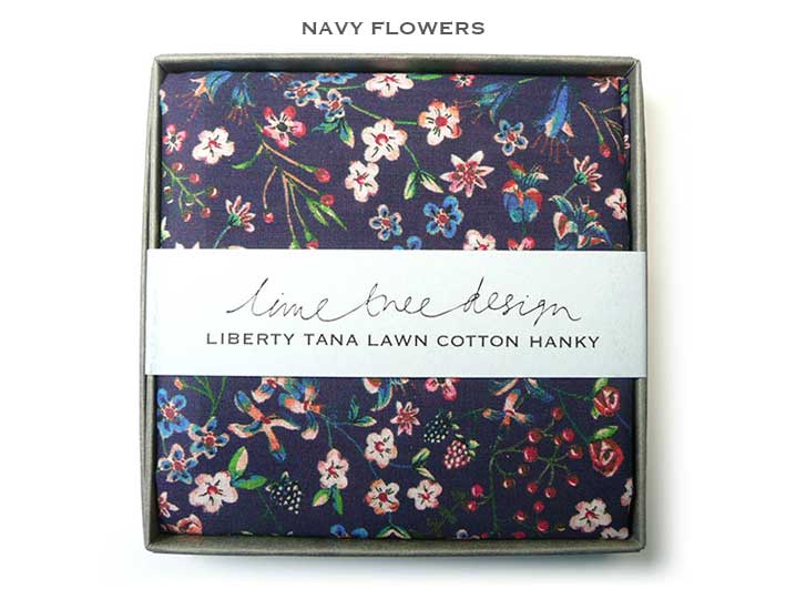 A wonderful boxed gift of a single Liberty Tana lawn fabric handkerchief perfect for men and women alike. Handmade in Nottingham by Lime Tree Design. They make a great luxury present for someone who is difficult to buy for! Can be used as a pocket square in a suit or tied on a handbag to add a flourish, or to blow your nose!