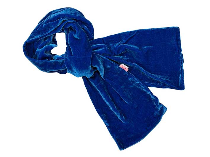 Bright yet sophisticated, this cerulean blue silk velvet scarf adds a vibrant pop of colour to any outfit. The smooth, soft fabric feels indulgent against the skin, and its lightweight warmth makes it perfect for year-round wear. Ideal for anyone who loves a bold yet wearable statement. Measuring 165cm x 17cm. Materials: 82% viscose, 18% silk.